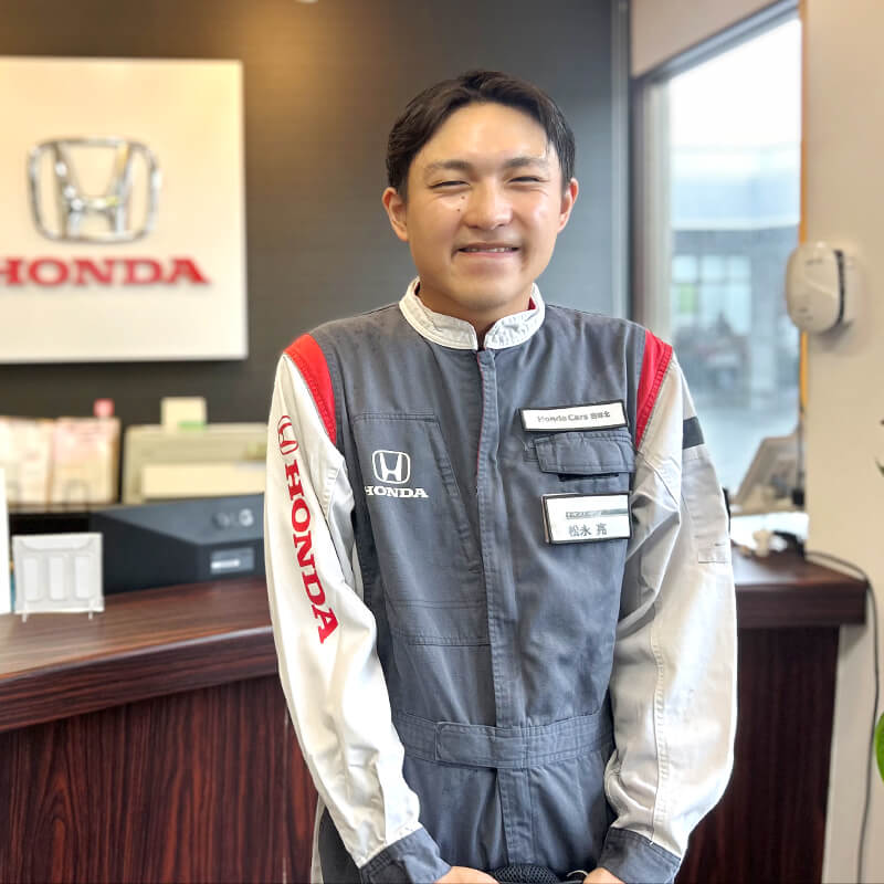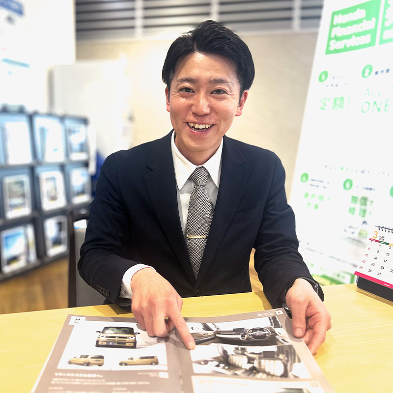 様々な業種がある中、人とのコミュニケーションが好きだった私は営業に興味を持っていました。実際に他の業種への会社説明会なども行った中で、Hondaの魅力やお客様との長いお付き合いを含め、信頼される人間になれると感じ、入社に至りました。また、地元で働けるということも魅力の一つでした。お客様が地域の何かで繋がっていたりする事もあり、様々な縁を感じることが多くあります。会社の先輩方も気軽に相談できる方が多く、仕事でも沢山フォローをいただくことがあります。 若いスタッフにとっては、不安よりも期待を大きく感じることができる会社なので、ぜひ一緒に働いてみませんか?